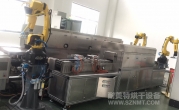 2、本生產(chǎn)線分為機械手移載產(chǎn)品至菱形線、取樣與安全防護門、菱形輸送線、預(yù)熱爐、產(chǎn)品出爐溫控監(jiān)測及位置檢測、噴硅系統(tǒng)、視覺檢測系統(tǒng)、流量監(jiān)測系統(tǒng)、NG排除機構(gòu)、機械手移載至網(wǎng)帶輸送線、取樣與安全防護門、網(wǎng)帶輸送線、固化爐、機械手移載至包裝線、取樣與安全防護門;系統(tǒng)分為兩種生產(chǎn)模,硅化線和非硅化。